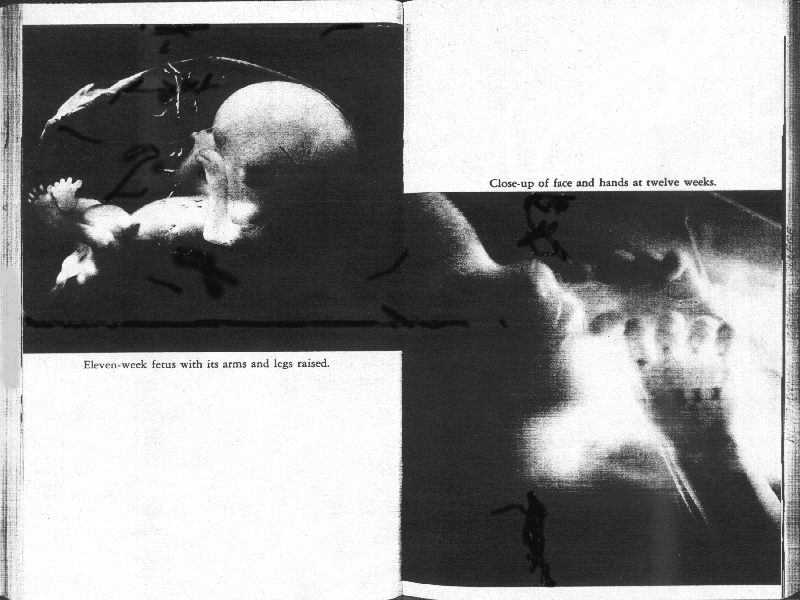 Eleven-week fetus with its arms and legs raised.